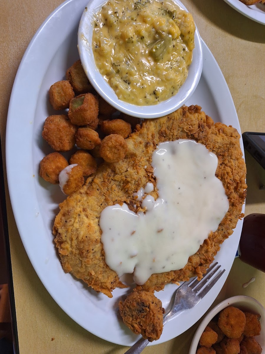 Chicken Fried Steak Mashed Potatoes and Fried Okra